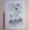 original unpublished drawing from "Time is a Flower" - rudbeckia