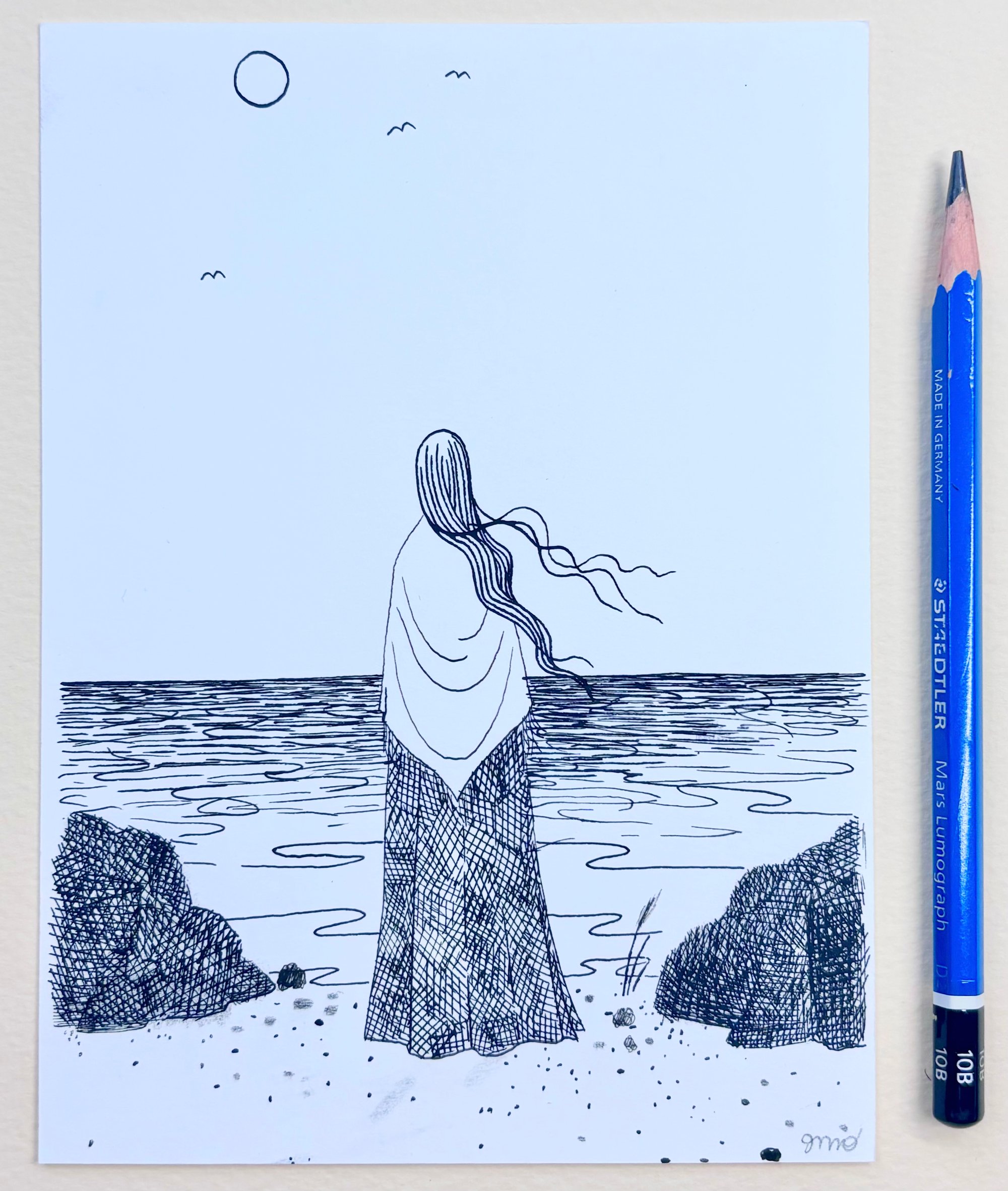 Small original ink drawing from the book " House of Dreams -the Life of L.M. Montgomery" , written by Liz Rosenberg Pen and Ink on paper 17x13 CM approx.